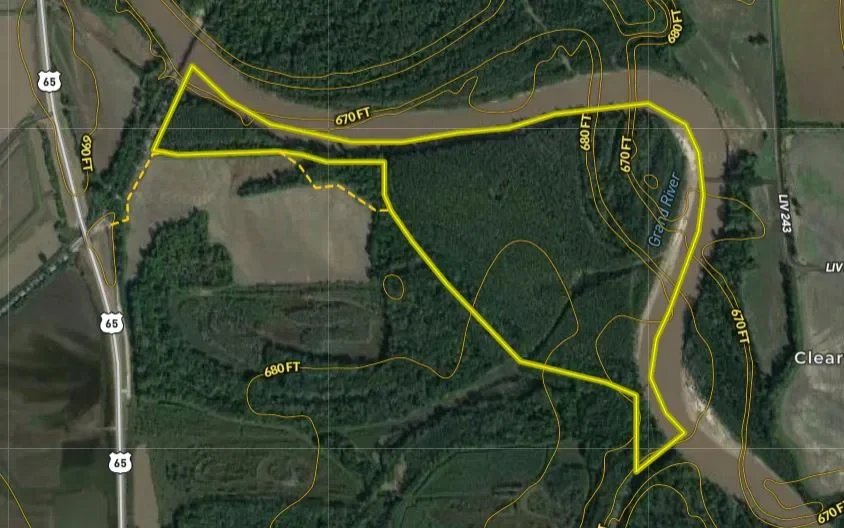 Private land shooting hours during Missouri's spring turkey season extend to sunset, giving you a full afternoon window that public land hunters lose at 1:00 p.m. The Grand River provides a natural barrier that limits pressure from surrounding properties and concentrates wildlife movement through this tract.